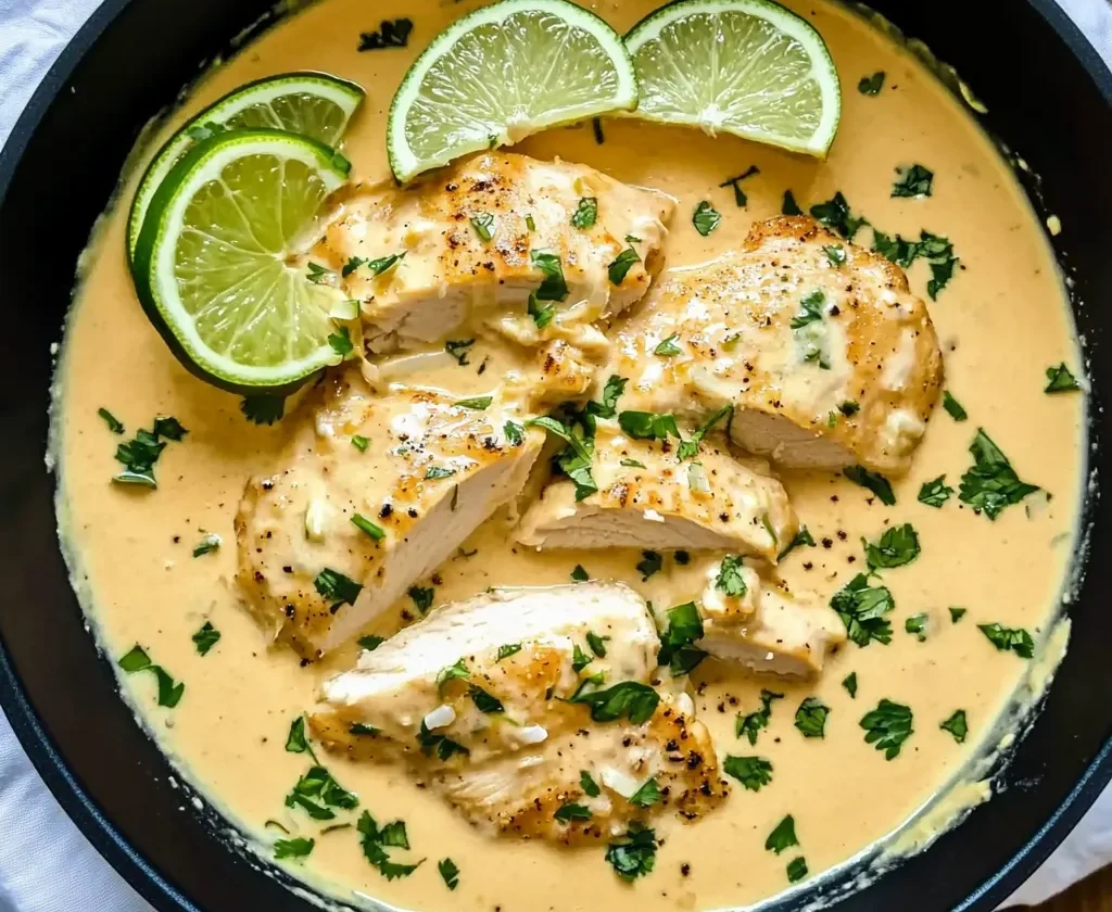30-Minute Creamy Coconut Lime Chicken features tender chicken breasts or thighs simmered in a silky coconut milk sauce infused with lime, ginger, garlic, and fresh cilantro. It’s a one-pan dish that’s naturally dairy-free, rich in flavor, and perfect for fast, satisfying dinners.