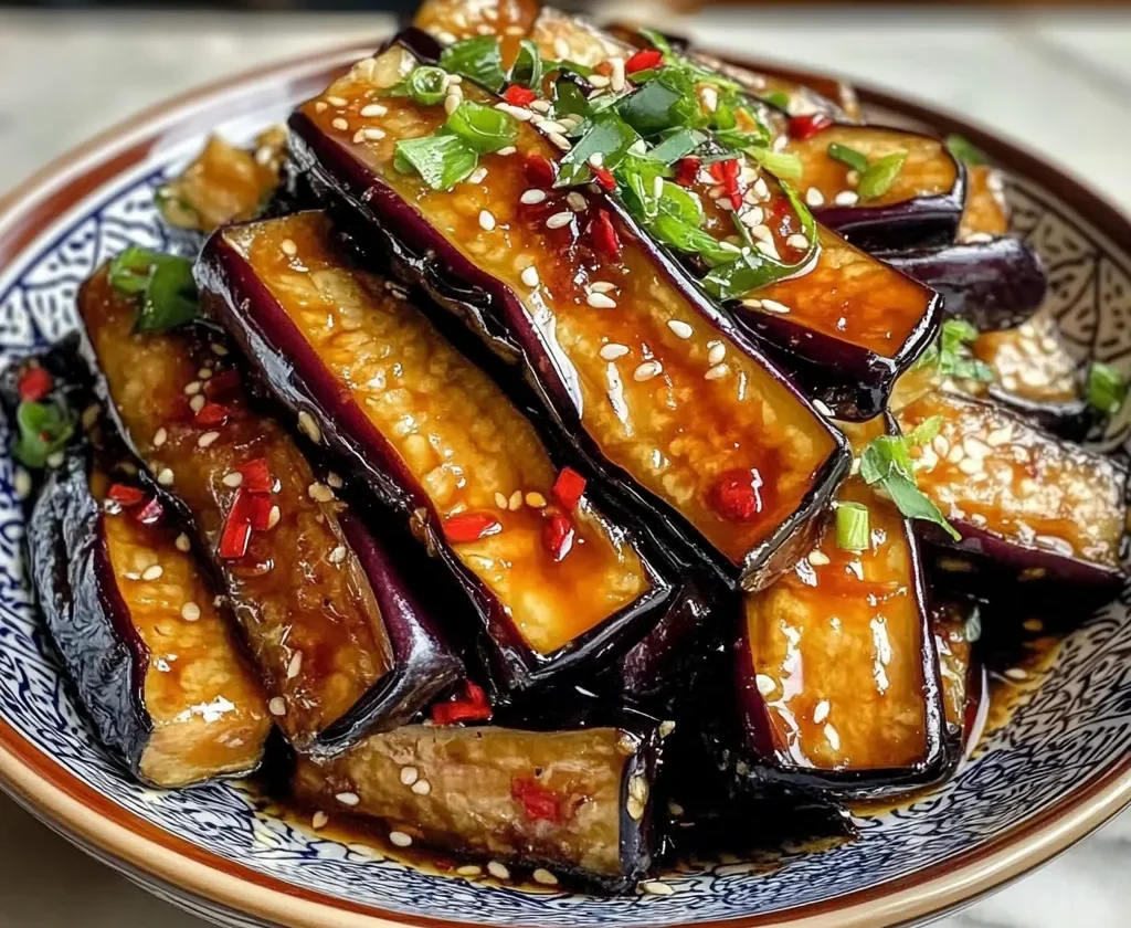 Crispy Eggplant Tossed in Garlic Soy Glaze is a Chinese-inspired dish featuring pan-fried eggplant batons coated in a light cornstarch crust, then tossed in a thick, glossy sauce made with garlic, ginger, soy sauce, and a touch of sweetness. The result is a dish that’s crisp, sticky, and bursting with umami flavor—perfect served over rice or alongside stir-fried vegetables.