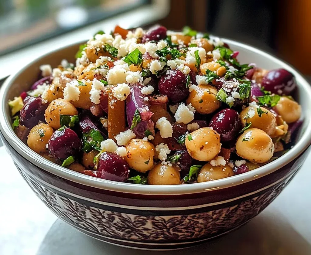 This salad became popular for its bold flavors and simple prep: creamy chickpeas, earthy black beans, crisp onions, salty feta, and fresh parsley—all brought together with a punchy red wine vinaigrette. It’s the kind of salad you make when you need something effortless yet delicious, whether for meal prep, potlucks, or quick lunches. With zero cooking required and ingredients you likely already have, it’s a recipe that proves simple food can still be exciting.