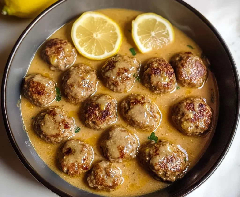 Tender Greek meatballs (Keftedes) simmered in a rich lemon-butter sauce—flavorful, comforting, and perfectly tangy. A classic Mediterranean favorite!